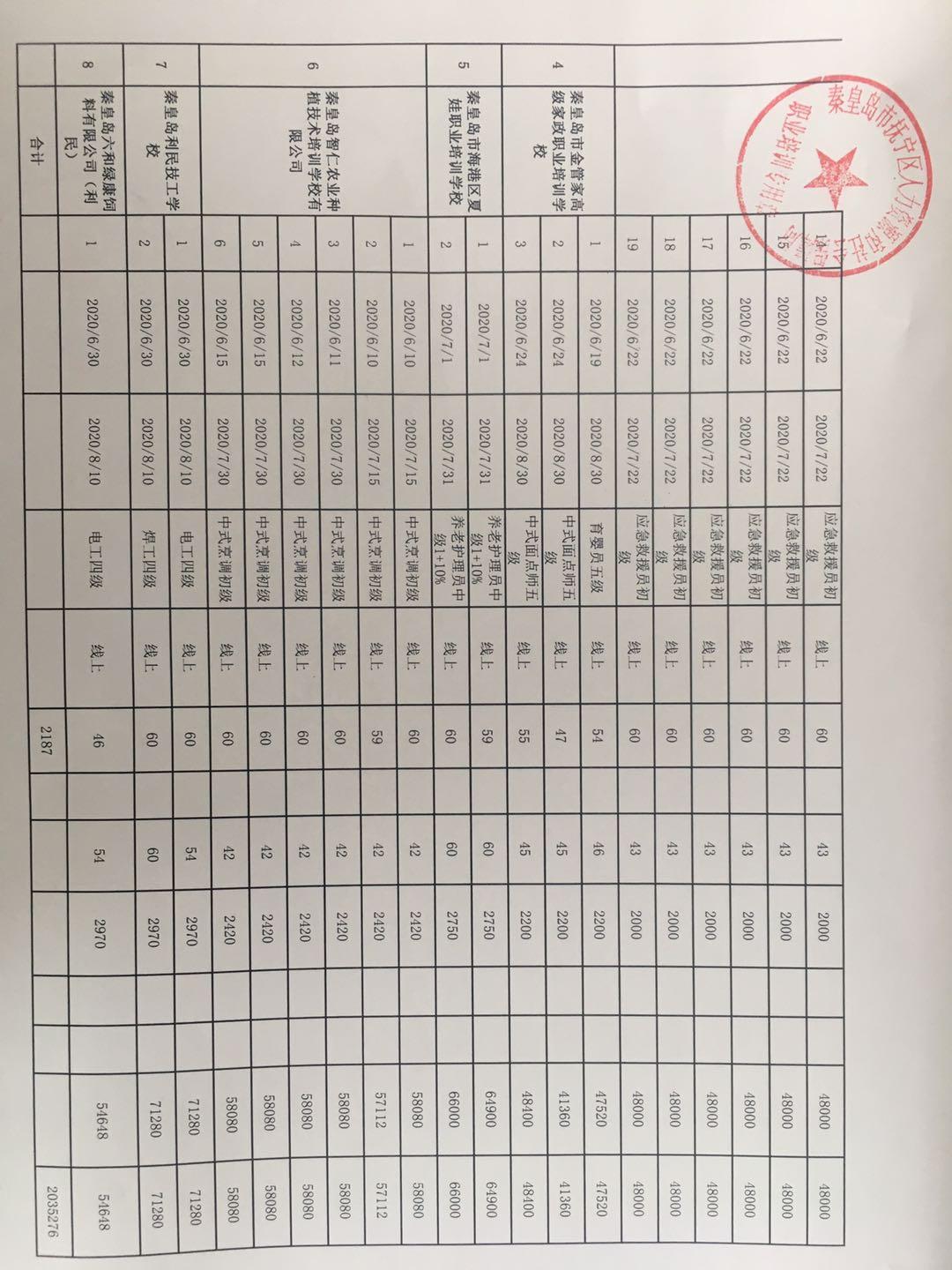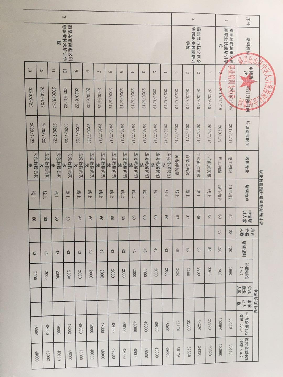 抚宁区2020年第二批技能提升预拨资金公示