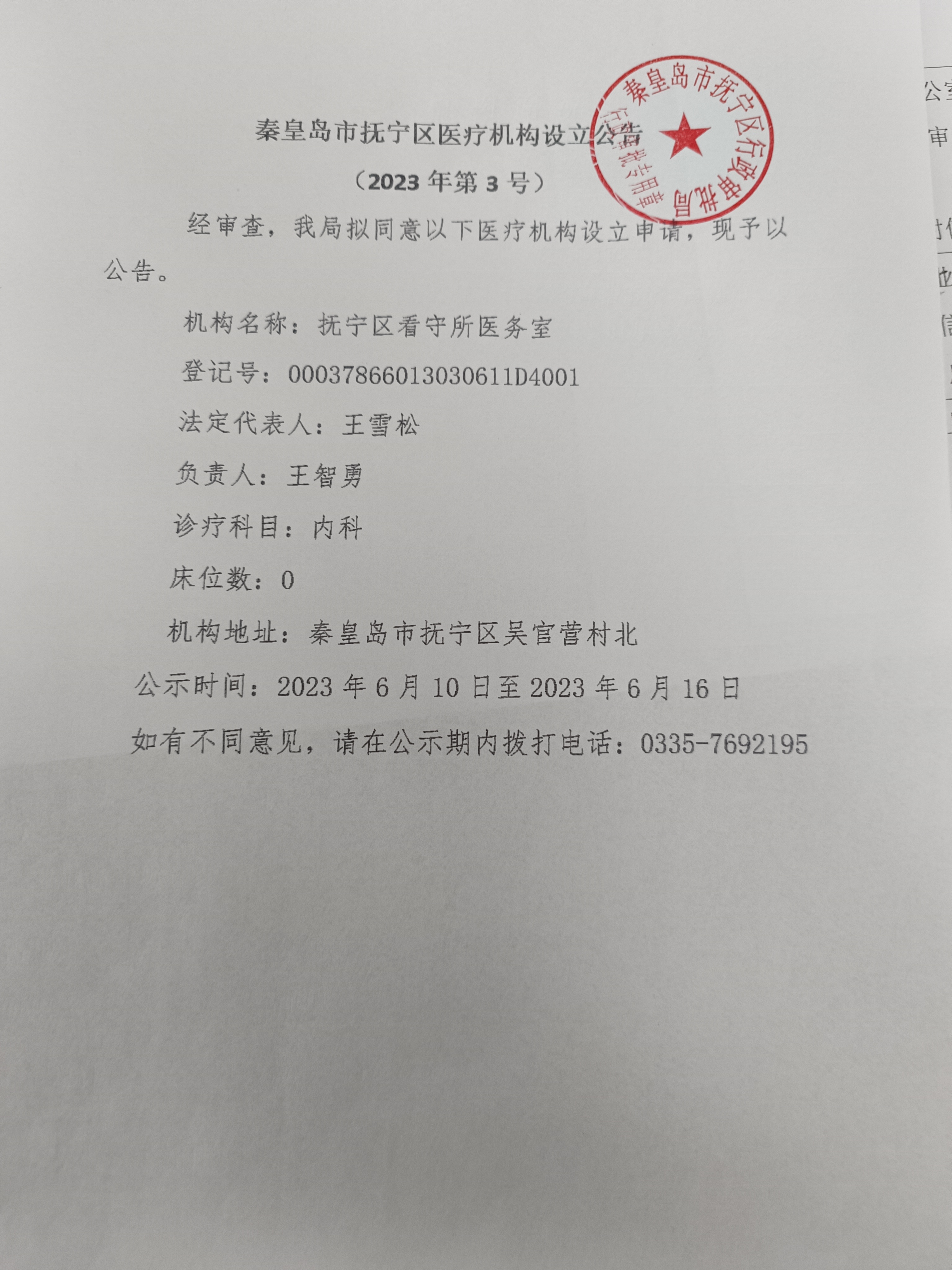 秦皇岛市抚宁区医疗机构设立公告